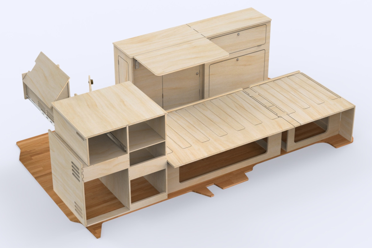 Wie alle Möbel von Simple Vans besteht das gesamte Set aus leichtem, modularem PEFC-zertifiziertem Pappelsperrholz und wird in Rohholz geliefert, sodass du es nach deinem Geschmack ölen, lackieren oder streichen kannst. Die Montage ist einfach, solide und für echte DIY-Van-Bauer konzipiert – es sind keine besonderen Fachkenntnisse erforderlich.