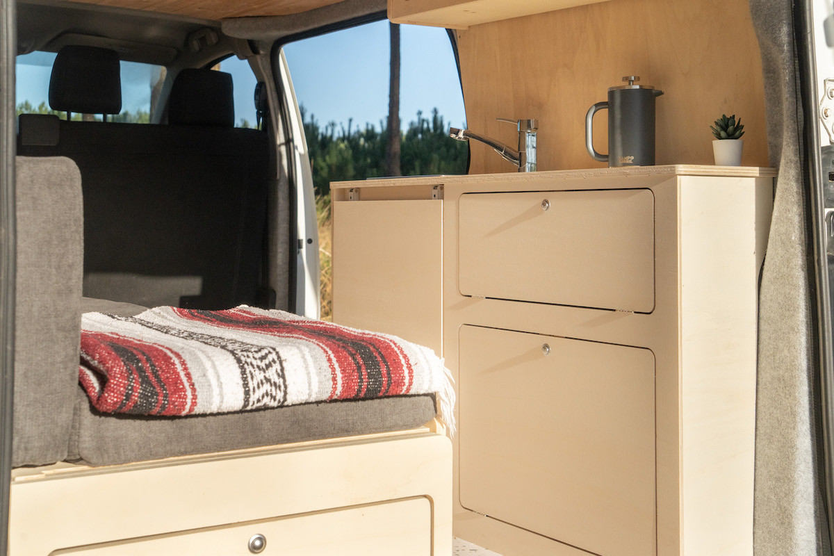 Kompakt, clever und voller Funktionalität bringt die A2v2 Ordnung, Arbeitsfläche und Wasserversorgung in deinen L1-Van – und macht jede Reise reibungsloser, jedes Essen einfacher und jede Nacht komfortabler.