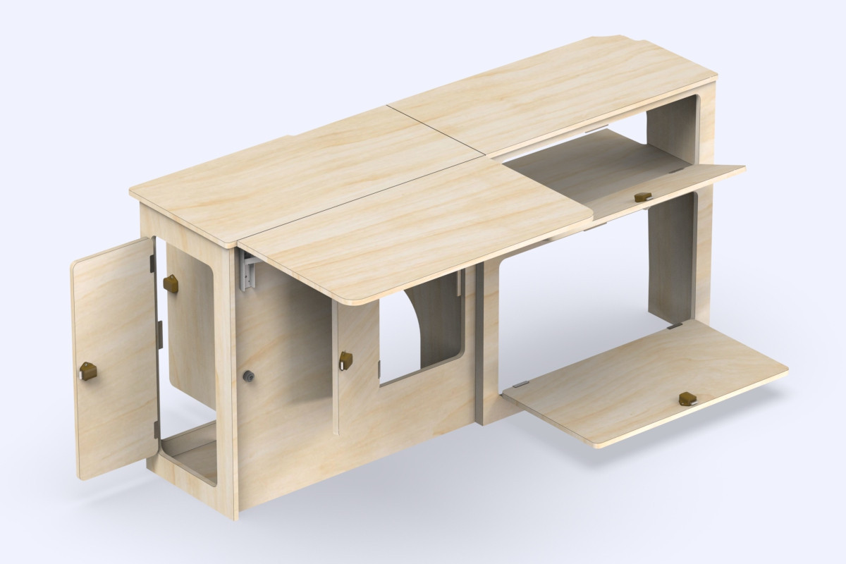 Unsere sorgfältig entworfene Möbeleinheit für Campervans fügt sich nahtlos in den Rest des Innenraums deines Vans ein und optimiert jeden Zentimeter Platz in deinem SWB-Van. Dieses durchdachte Design stellt sicher, dass du über den nötigen Stauraum, Arbeitsbereich und Esskomfort verfügst, um das Beste aus deinen Vanlife-Abenteuern zu machen.