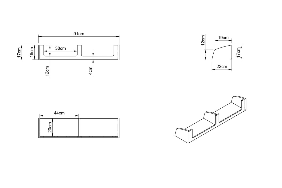 - Abmessungen der Möbel (Länge x Höhe x Tiefe): 92 x 16 x 21 cm