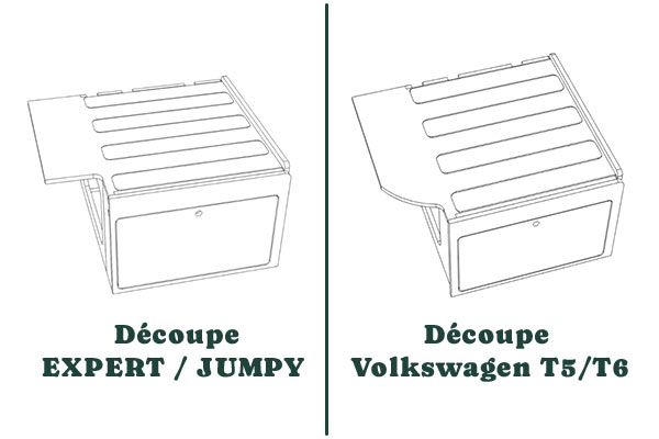 The sliding bed has been designed to fit in the largest number of vans. As this furniture is universal, you may need to make some cuts so that it adapts to the configuration of your van. Indeed, certain combinations of furniture and/or the presence of a partition may affect the available length for your comb bed.