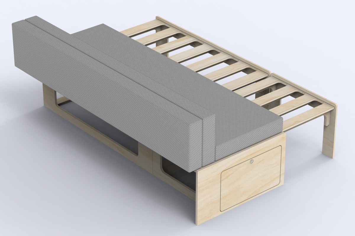 Designed for vans like the VW T5/T6, Renault Trafic and similar models, this mattress is built in two carefully engineered parts. The first piece is your backrest section, made from two foam strips sewn together so they fold neatly onto themselves when the bed is in bench mode. This keeps your seating position comfortable and upright during the day – and flips out flat at night to form part of your full sleeping surface. The second piece is the bench-seat cushion, completing the bed when unfolded and giving you a supportive sitting surface when the bed is retracted. Together, they create a clean, quick, easy transition from seating to sleeping in under 30 seconds.