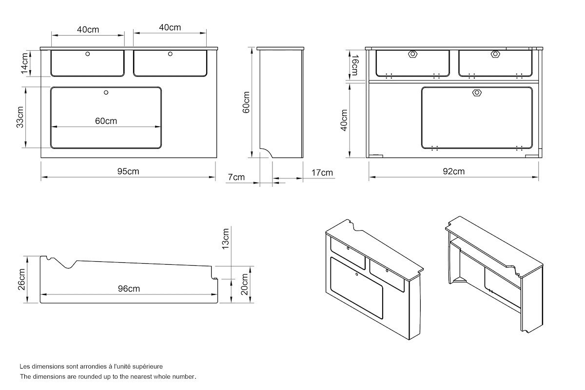 Build yourself a functional Micro Camper from your Citroen Berlingo 2, maximize storage and functionality with this space-saving side furniture. Features easy-access compartments, work surface, and compatibility with our sliding beds.