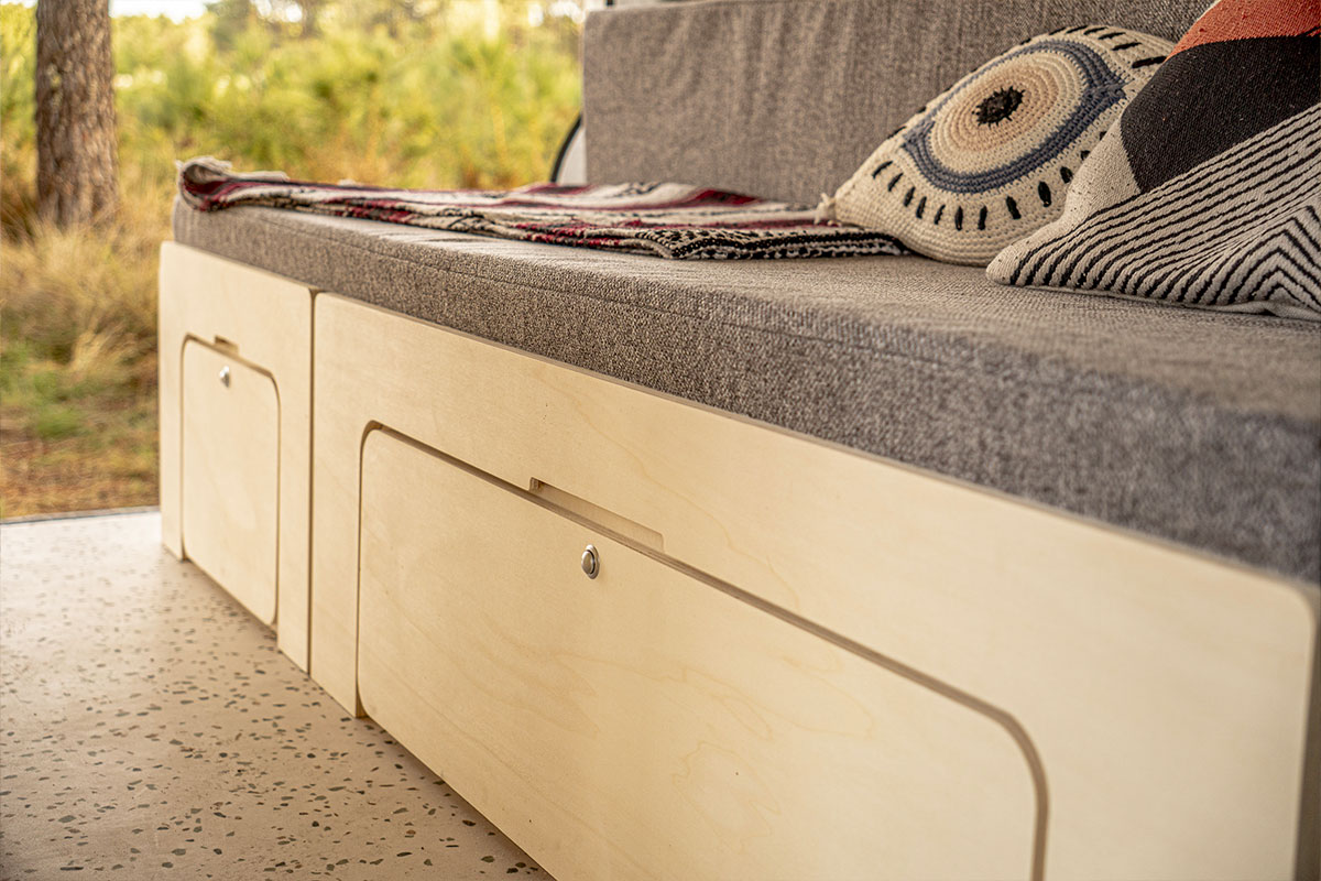 Composée de deux modules (60 cm + 120 cm), cette banquette compacte se transforme en canapé en L, ou en spacieux lit double de 120 cm de large, supportant jusqu'à 200 kg. En y ajoutant notre tiroir arrière ou intérieur, vous accédez encore plus facilement au rangement sous le lit rendant l'ensemble encore plus pratique.