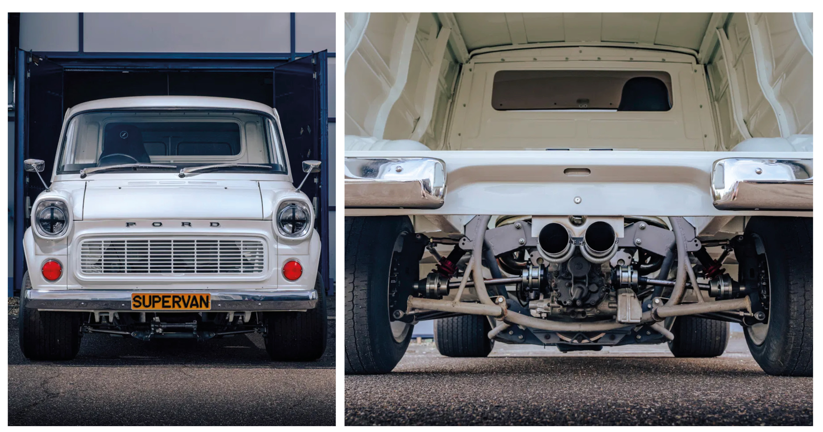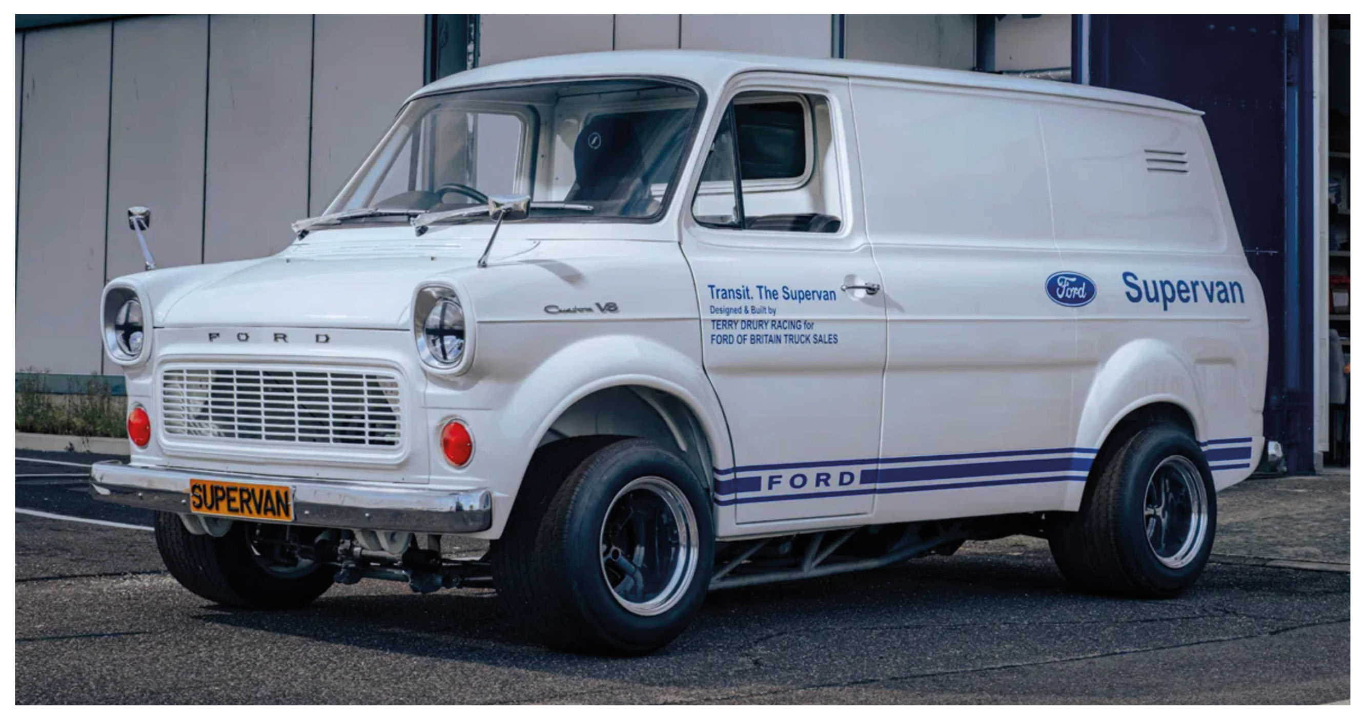 Ils n’ont pas mis n’importe quel moteur. Ils sont allés à fond. Le Supervan reposait sur un châssis Cooper Monaco modifié — un véritable châssis de voiture de course — avec un V8 Ford GT40 de 435 chevaux installé là où se trouvaient normalement les cartons. De l’extérieur, il avait toujours sa silhouette de Transit. Mais en dessous ? C’était du pur Le Mans.