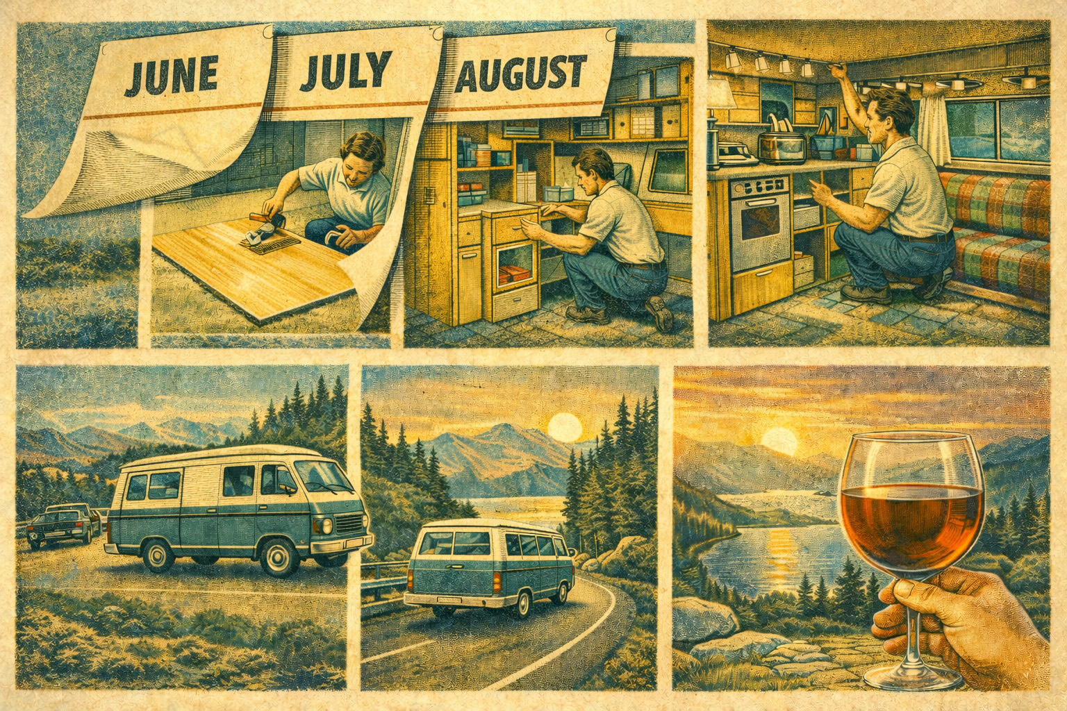 Nous sommes début mars. Votre voyage d’été est calé deux ou trois semaines en juillet, quelque part au soleil, quelque part qui mérite le détour. Le fourgon nu est garé devant la maison. Vous avez la vision. Vous avez accumulé tout un tas d’aménagement de van soigneusement documenté. Le kit est encore un onglet ouvert dans votre navigateur depuis janvier.