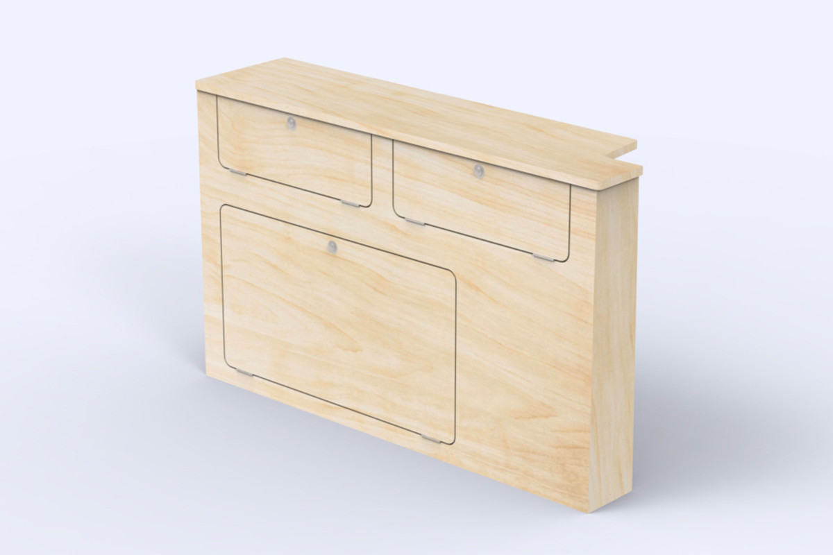 Découvrez le petit génie de l'aménagement : Ce meuble latéral a été spécialement conçu pour les mini vans et petits utilitaires, offrant un maximum de rangement et de fonctionnalité dans un espace réduit.