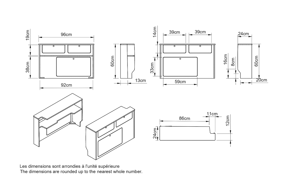 Le plan de travail de 28 x 97 cm est idéal pour de multiples usages : préparer un repas, écrire votre journal de bord, ou travailler sur votre ordinateur.