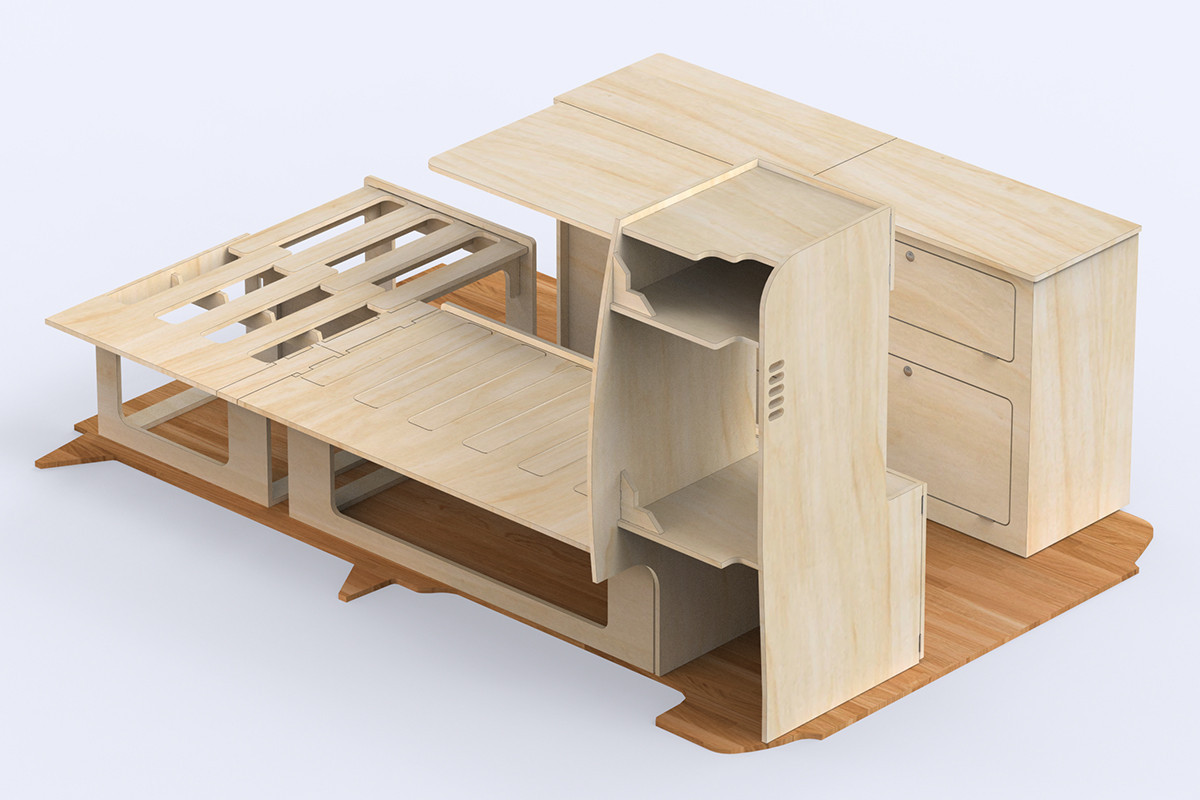 Comme pour tous les meubles Simple Vans, l’ensemble est fabriqué en contreplaqué de peuplier certifié PEFC, léger et modulaire, livré en bois brut prêt à être huilé, verni ou peint selon vos goûts.