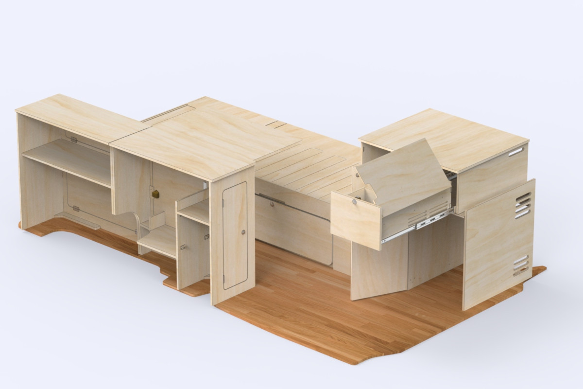 Nos machines CNC de pointe garantissent que chaque pièce est découpée méticuleusement pour un ajustement précis. Inspiré par la menuiserie traditionnelle, notre système Quick Slot innovant permet un assemblage rapide et sans outil, vous permettant d’aménager votre van en un temps record pour prendre la route dès que possible.