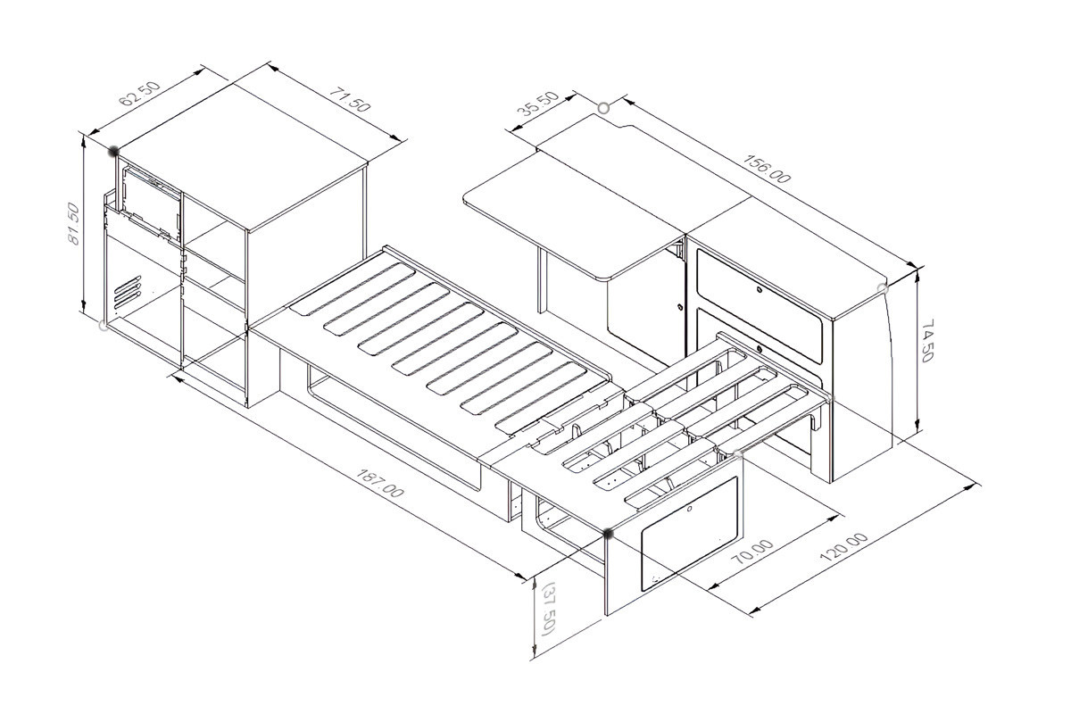 Au cœur du kit se trouve le lit peigne L B120 , notre lit le plus grand et le plus polyvalent.