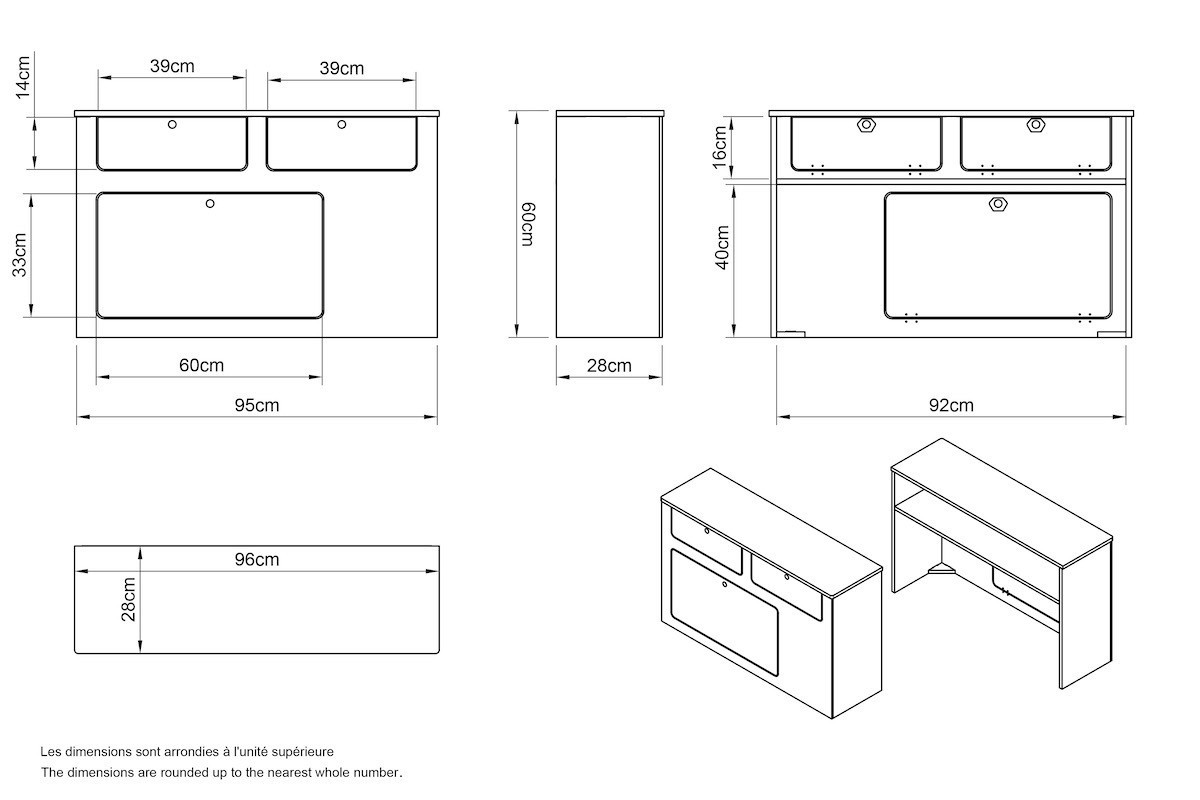 Le plan de travail de 28 x 97 cm est idéal pour de multiples usages : préparer un repas, écrire votre journal de bord, ou travailler sur votre ordinateur.