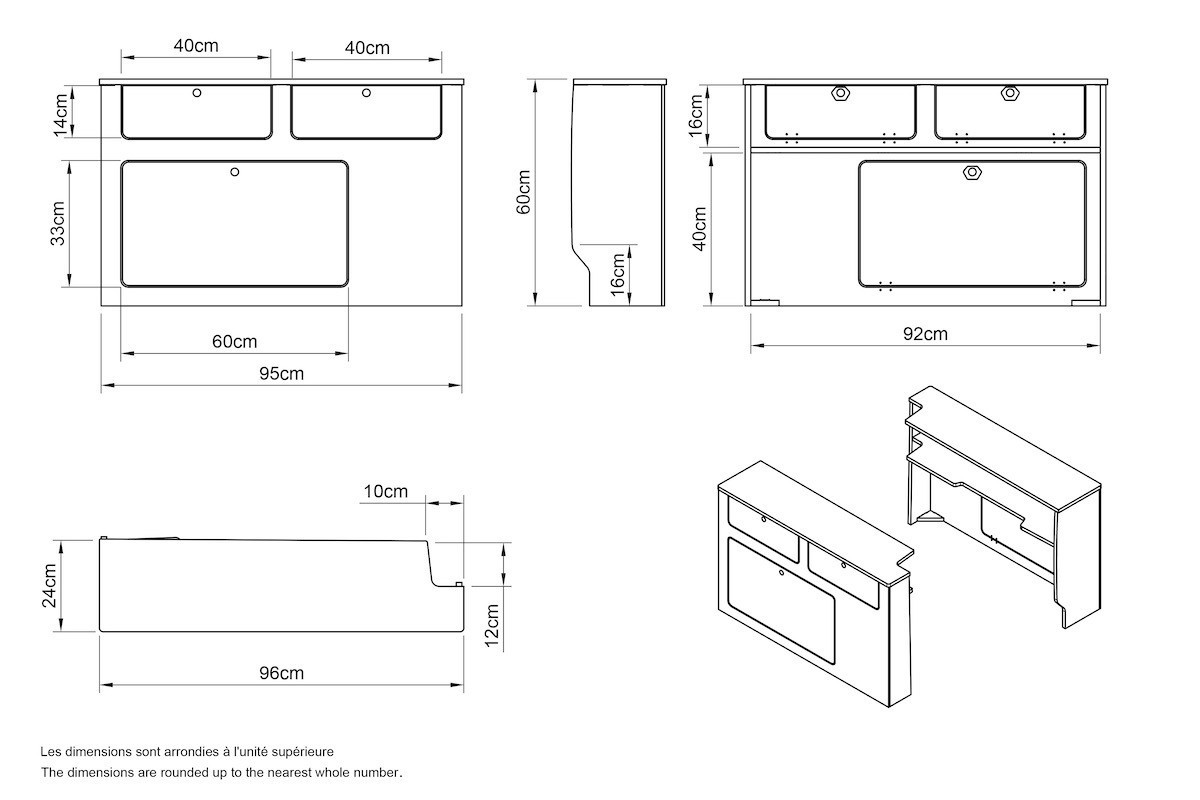 Le plan de travail de 28 x 97 cm est idéal pour de multiples usages : préparer un repas, écrire votre journal de bord, ou travailler sur votre ordinateur.