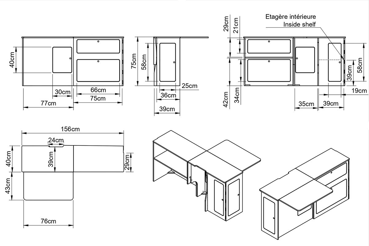 Construisez vous-même un Micro Camper fonctionnel ! Optimisez le rangement et la fonctionnalité grâce à ce meuble latéral peu encombrant. Il dispose de compartiments faciles d'accès, d'un plan de travail et est compatible avec nos lits coulissants.